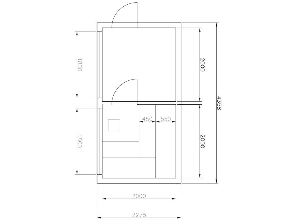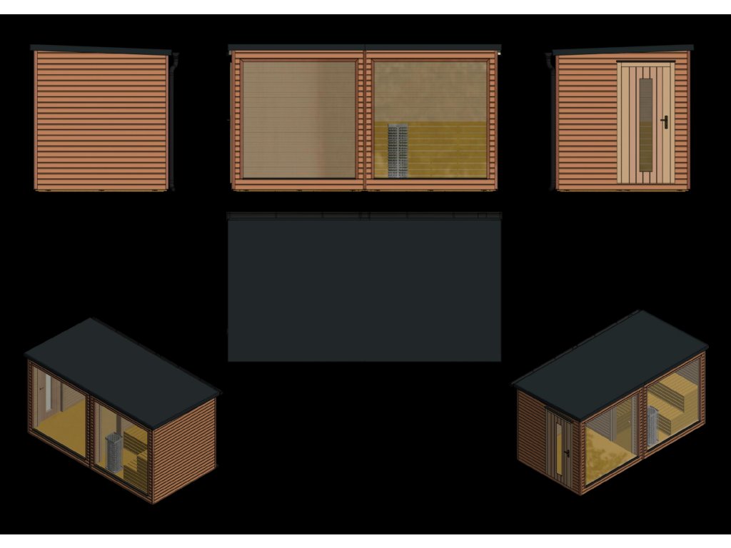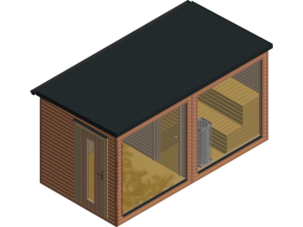 Finská sauna s odpočívárnou o vnitřním rozměru 2x2m a 2x2m