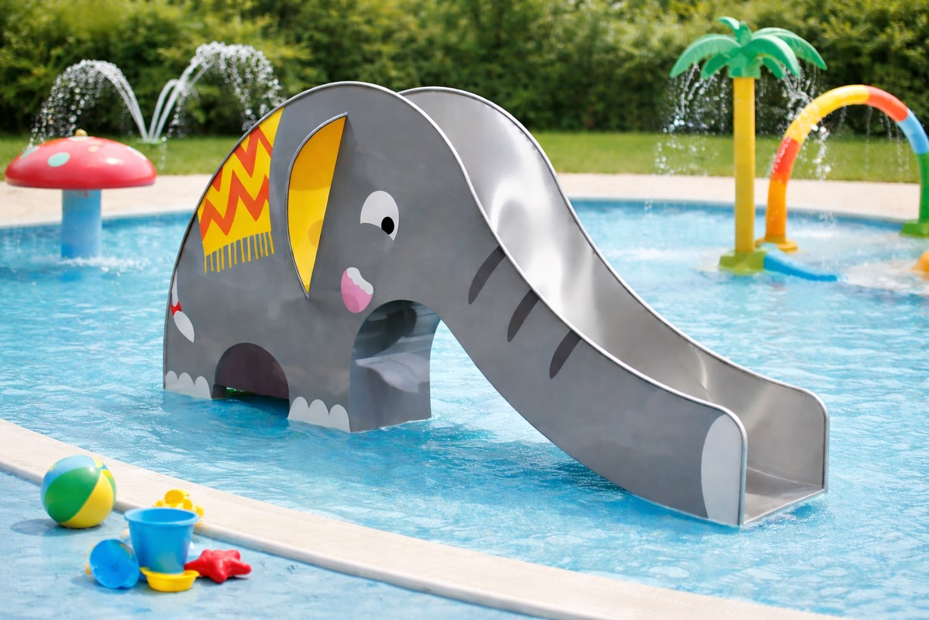 Dětské skluzavky jsou mezi nejatraktivnějšími prvky pro nejmenší návštěvníky. Jsou bezpečné, vizuálně výrazné a okamžitě přitahují pozornost. Ideální jsou pro brouzdaliště, dětské bazény a rodinné zóny. Interaktivní vodní atrakce, jako jsou fontány, sprchy, oblouky nebo trysky, vytvářejí dynamický prostor, kde si děti hrají dlouhou dobu. Jejich výhoda spočívá ve vysoké herní hodnotě, minimálních nárocích na prostor a vhodnosti i pro rekonstrukce.