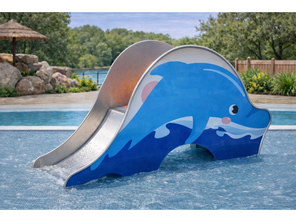 Dětská atrakce Skluzavka Delfín je vizuálně atraktivní a interaktivní vodní prvek, který zaručuje bezpečné používání pro děti v dětských bazénech, brouzdalištích i veřejných koupalištích. Konstrukce je určena pro intenzivní provoz.