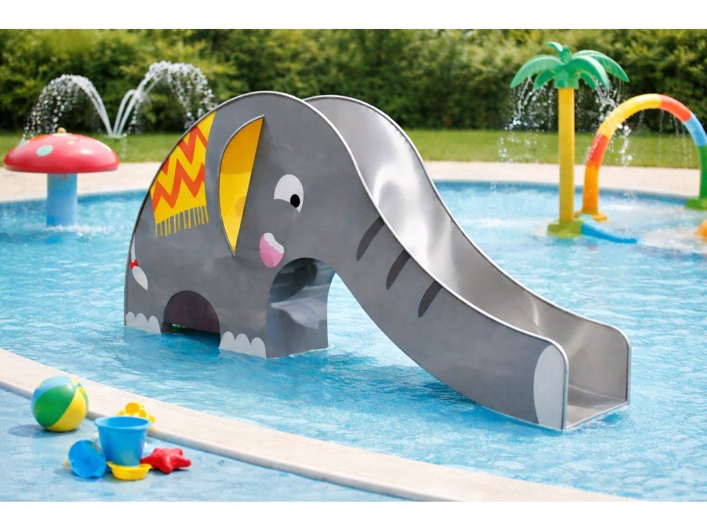 Dětská atrakce Skluzavka Slon je vizuálně atraktivní a interaktivní vodní prvek, který zaručuje bezpečné používání pro děti v dětských bazénech, brouzdalištích i veřejných koupalištích. Konstrukce je určena pro intenzivní provoz.