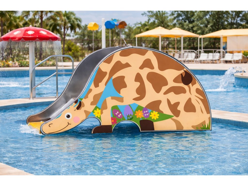 Dětská atrakce Skluzavka Žirafa je vizuálně atraktivní a interaktivní vodní prvek, který zaručuje bezpečné používání pro děti v dětských bazénech, brouzdalištích i veřejných koupalištích. Konstrukce je určena pro intenzivní provoz.