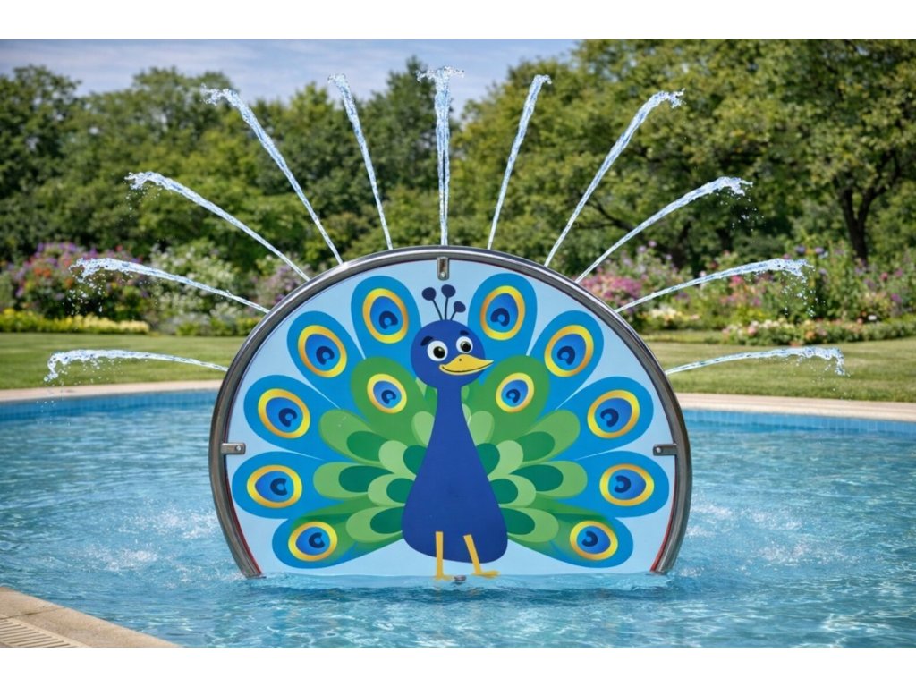 Vodní atrakce Páv je navržena jako vizuálně atraktivní a interaktivní vodní prvek, který vytváří rovnoměrné a bezpečné vodní efekty po celém obvodu konstrukce. Je vhodná pro intenzivní provoz ve veřejných bazénech, dětských bazénech i brouzdalištích.